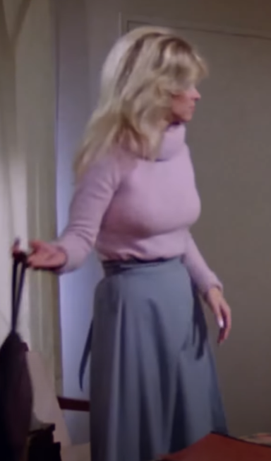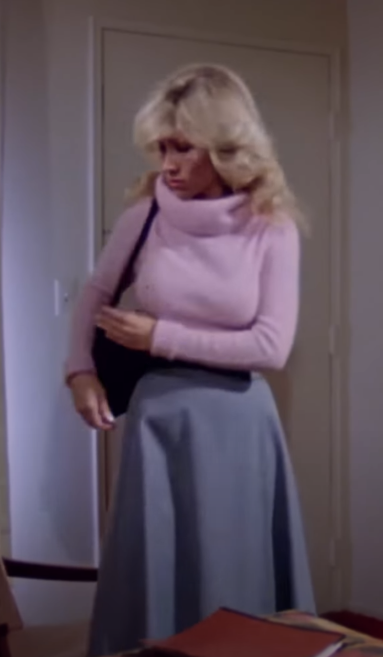 The fashion piece in this film is a pink fluffy cowl neck jumper in regulated size. This really stood out to me as it is like the one I used to have.
