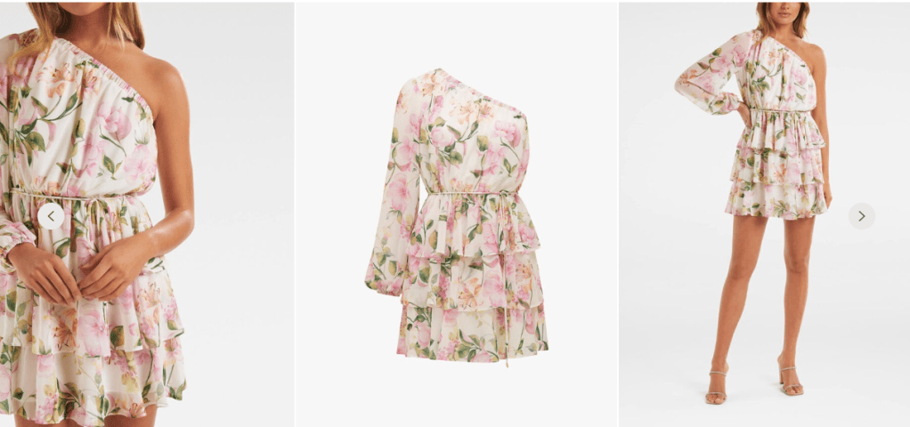 Might be able to do something with this. It has flowers on like the film dress. Really good price. The problem with this is possibly a ballerina waist. It is also probably too short. I would take the string belt off for a start, I always have to as I haven’t a small waist. Then what you would do revolves around what happens when you take the string off? This should come down to my knee if the sizing is accurate as the model is 5 ft 9.