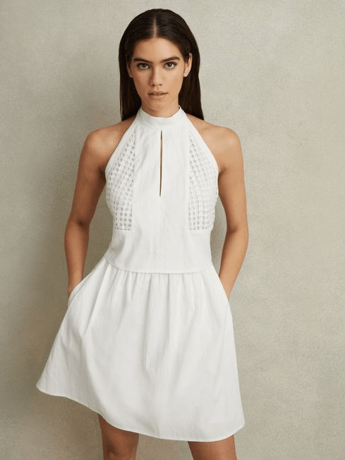 MINI BRODERIE HALTER NECK DRESS