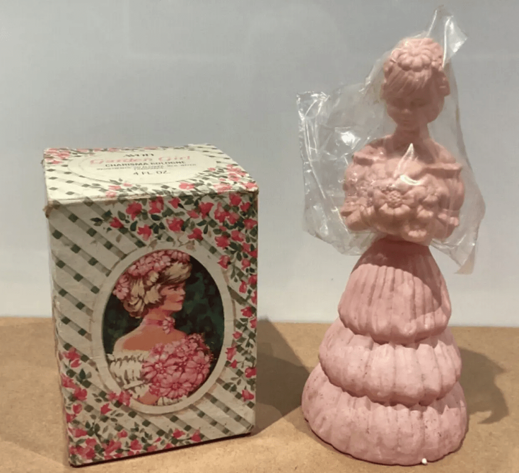 1972 Vintage Avon bottle Victorian Lady Charisma Bath oil with contents and box