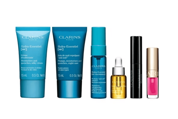 Free gift when you buy 2 selected Clarins, 1 to be skincare or foundation – online only, whilst stocks last