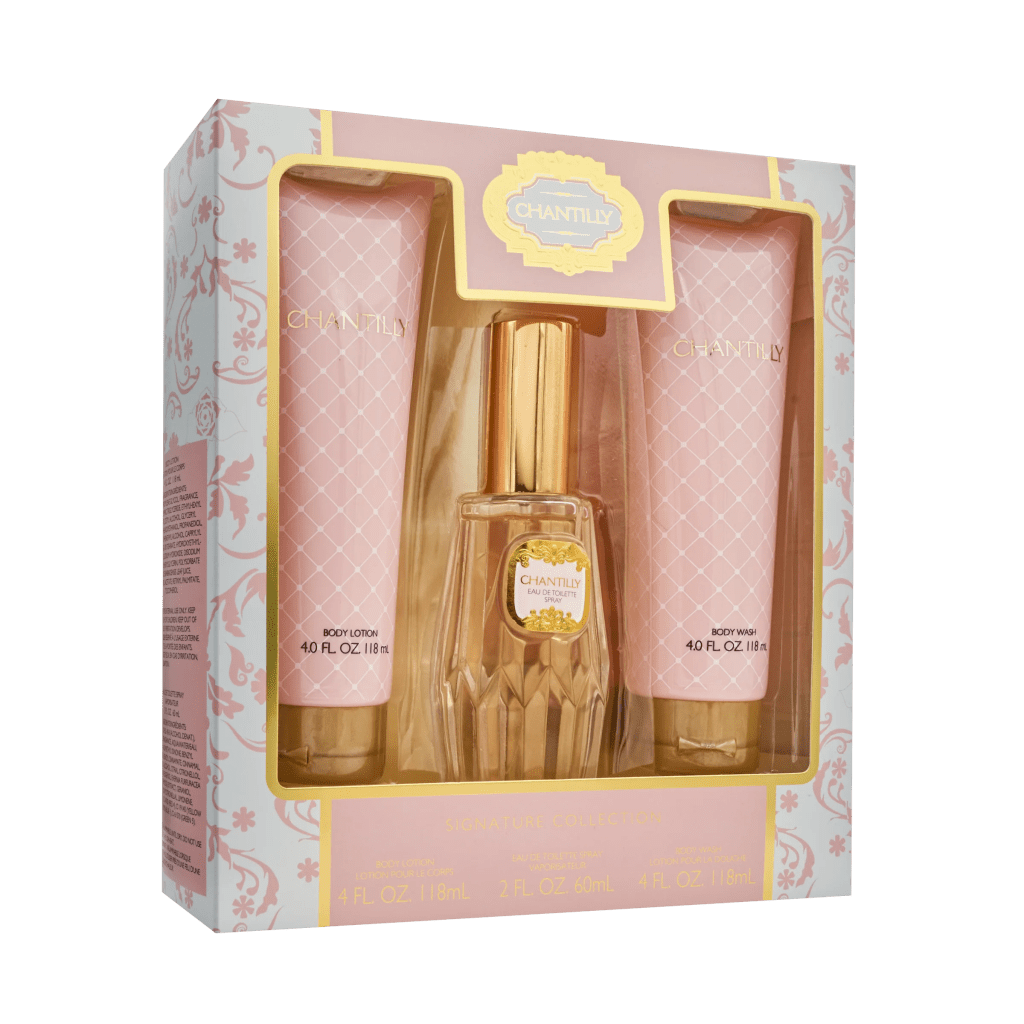 Our limited-edition Gift Set features a full size bottle of Chantilly EDT alongside limited edition tubes of Body Wash & Body Lotion (not currently sold separately!).