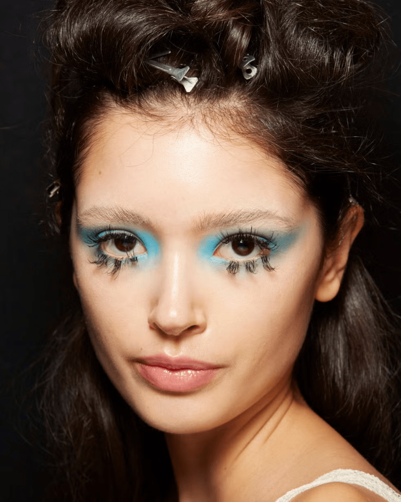 Even though the blue is fairly light it is quite powerful, so it is probably better to team it with a light lipstick and vice versa.