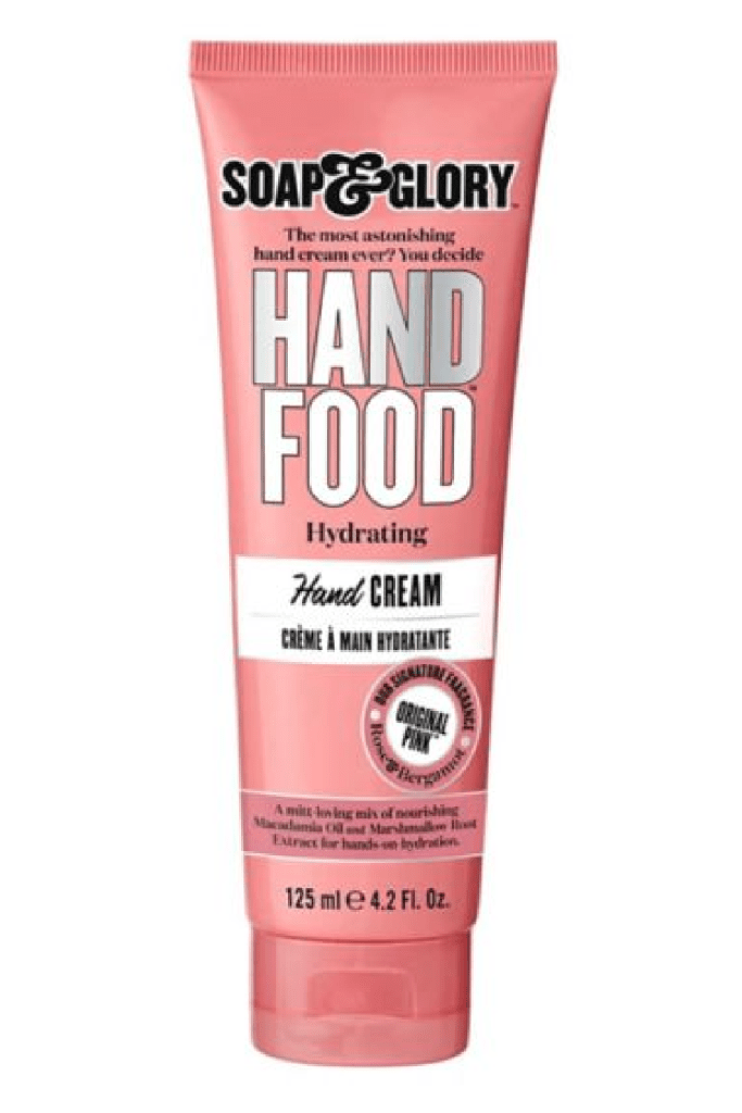 Apply a little Soap & Glory Hand Food Hand Cream 125ml as often as you want to soften, smooth and soothe dry, chapped or otherwise hampered hands. This non-greasy hydrating hand cream contains shea butter, macadamia oil and marshmallow for smoother and softer hands. Scented with our fan fav Original Pink rose & bergamot fragrance.