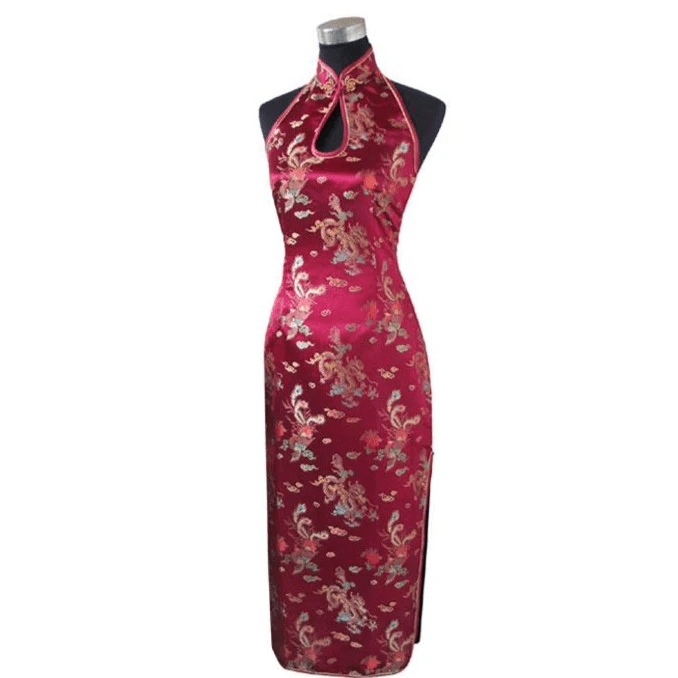 Backless Brocade Dragon & Phoenix Pattern Cheongsam Chinese Dress