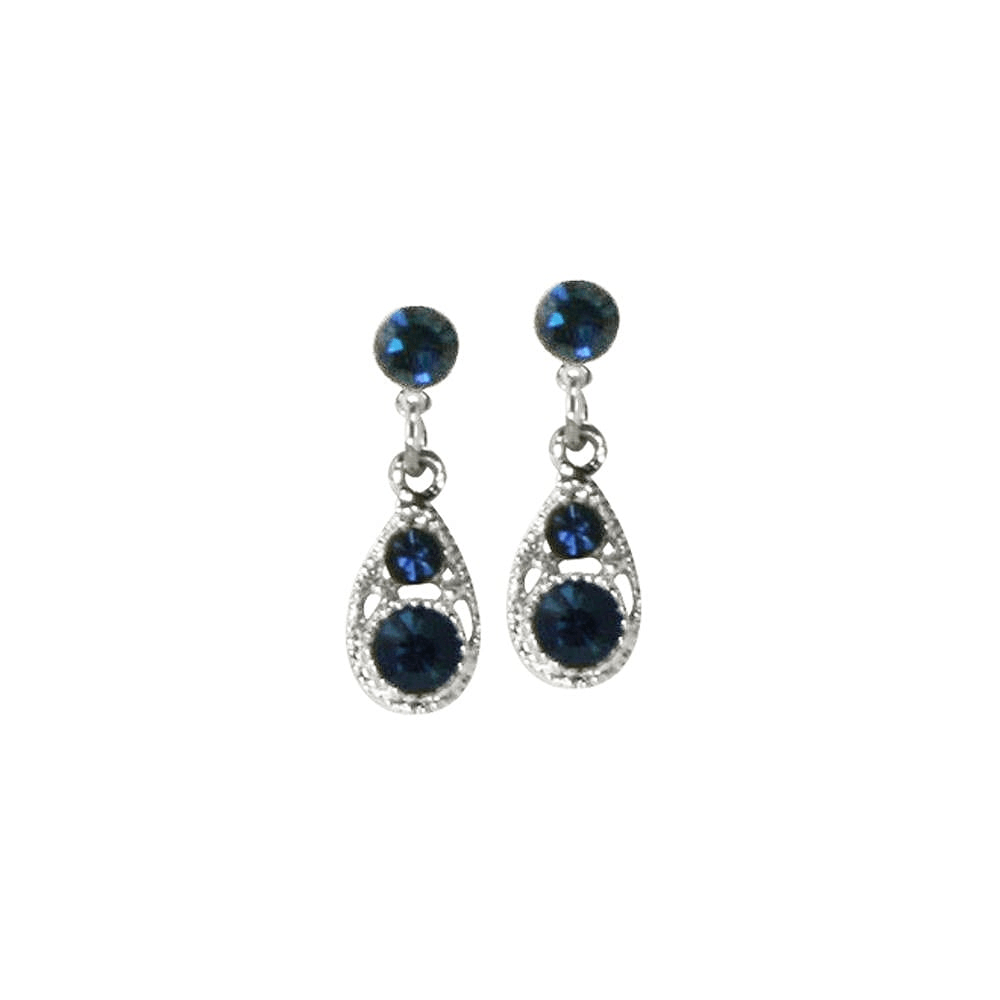 Filigree Montana Blue Crystal Silver Tone Drop Pierced Earrings