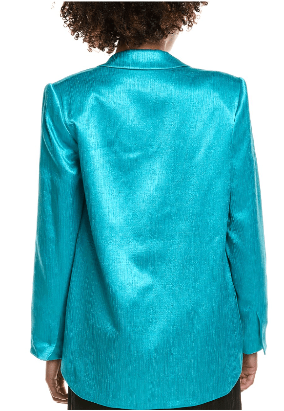 - Design details: notch lapel, padded shoulders, dual side on-seam pockets, button cuffs, and side slits at seams