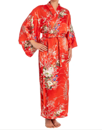 Japanese Silk Kimono Floral Print Long Red