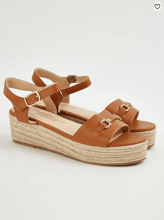 Brown Strappy Gold Tone Trim Wedge Sandals