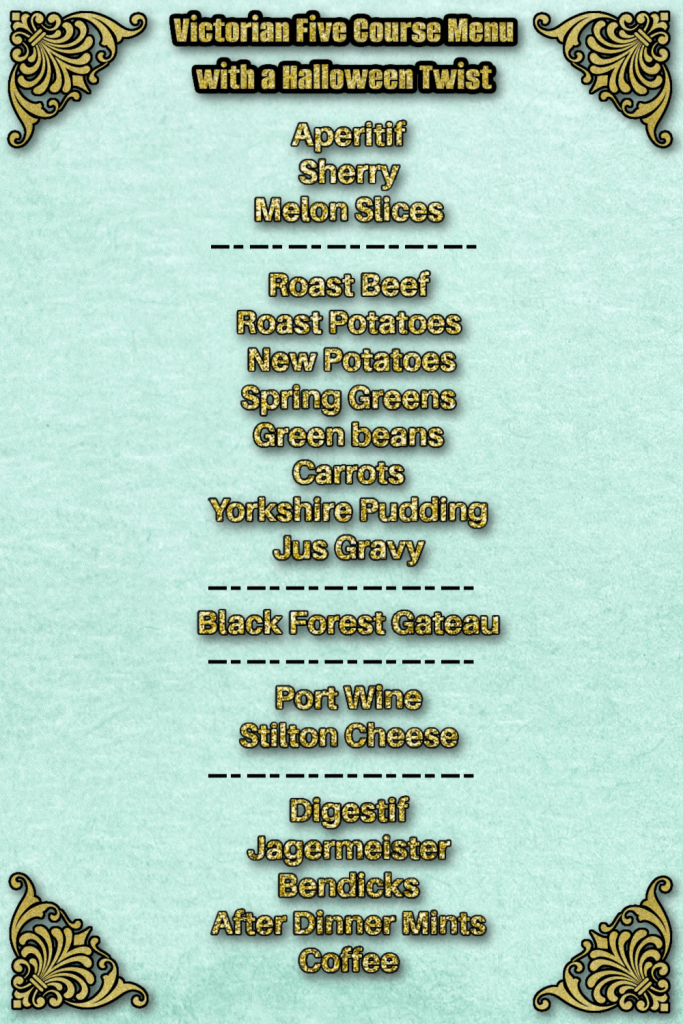 Just add your favourite Victorian Food and Drink and enjoy!!!