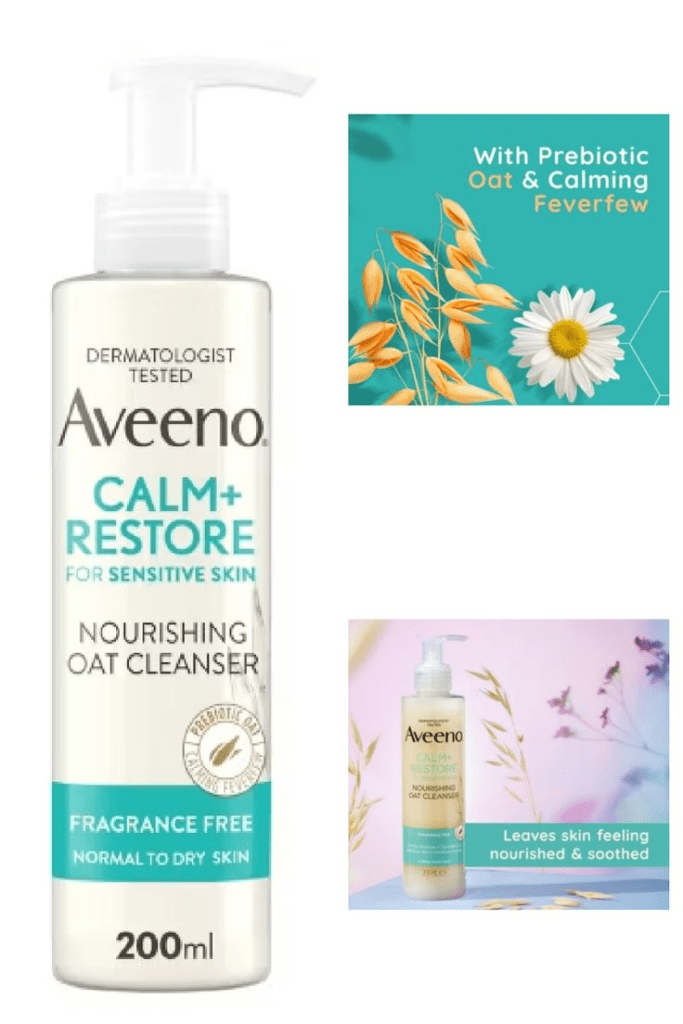 Highly recommend this. Not sure why but my skin had gone really dry and blemishy, but oily in my combination areas. I use this just on the dry irritable areas and it has cleared the problem up dramatically. Need to keep going with it, but this product works.Product detailsThis creamy cleanser gently removes dirt, impurities and oil, leaving the skin feeling soothed, hydrated & nourished. The cleanser also helps preserve the skin’s moisture barrier.How to useWet skin with lukewarm waterMassage 1-2 pumps into damp/wet skin in a gentle circular motionRinse thoroughly with lukewarm water and pat dry without rubbingUse twice a day: morning ∧ nightComplete your skincare cleansing routine with the Aveeno CALM+RESTORE® Soothing Oat Toning Lotion.