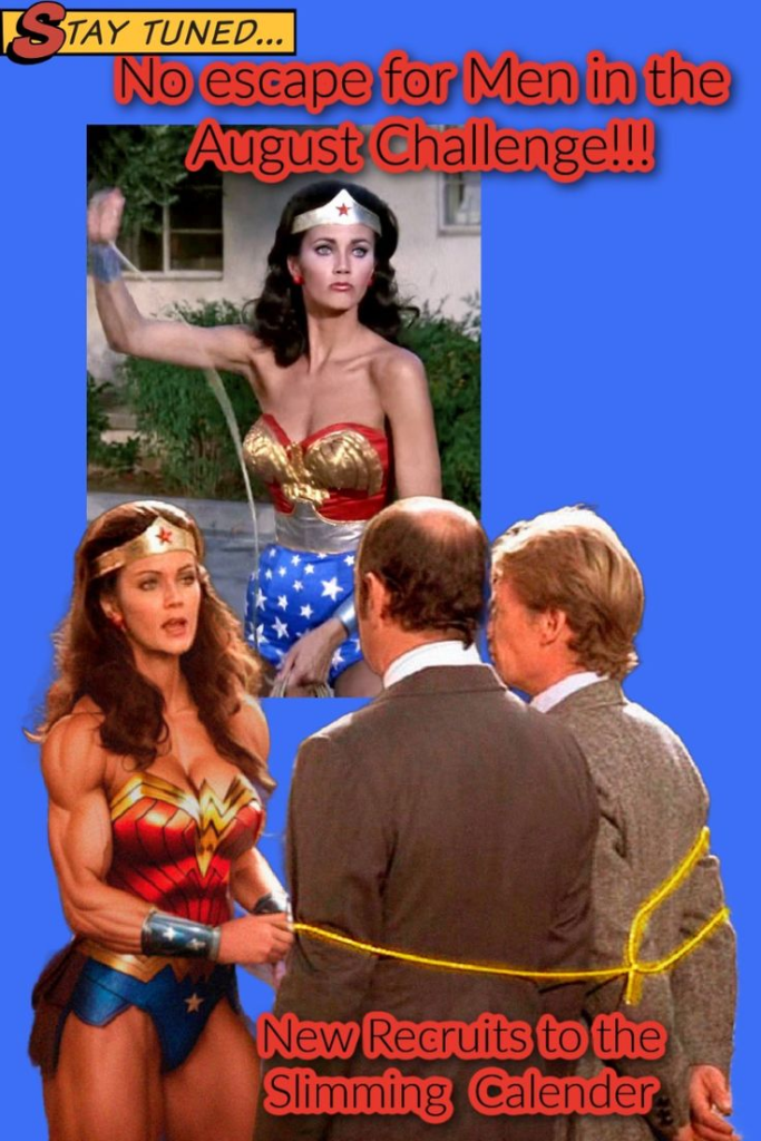 Wonder Woman is coming for you!!!! Slimming Calender in August is for men too ~ come and join in if you are a man. Will just take a little of your time each day, but is fun and also knowledgable. Give it a try!!!!