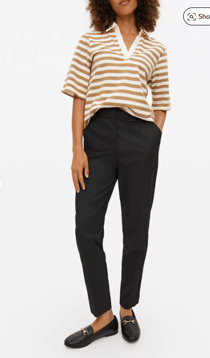 Ultra flattering, our black tapered trousers will solve all your problems when it comes to fashion and comfort. Team with a vibrant knit for a look that’s screams ‘thrown together’ ready for your next impromptu lunch.Black tapered trousers4 PocketsZip & button flyBelt loopsContains fibresAdded stretchModel wears a size 10RModel’s height is 5’8″