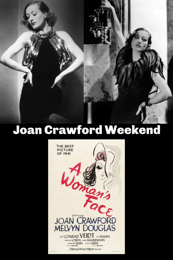 A Woman’s Face is a 1941 American drama film noir directed by George Cukor and starring Joan Crawford, Melvyn Douglas and Conrad Veidt. It tells the story of Anna Holm, a facially disfigured blackmailer, who, because of her appearance, despises everyone she encounters.