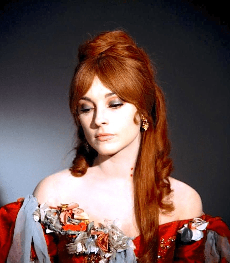 Here the usual blonde Sharon Tate is modelling Autumnal hair shades and makeup.