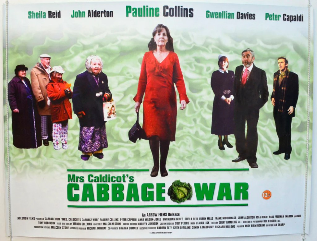 Mrs Caldicot’s Cabbage War is a British comedy-drama film from 2002, directed by Ian Sharp and starring Pauline Collins, John Alderton and Peter Capaldi. It is based on a 1993 novel with the same name by Vernon Coleman. It is the story about a woman, Thelma Caldicot, who is coerced by her manipulative son Derek and daughter-in-law to move into a run-down nursing home, owned by Derek’s employer, after the death of her bullying husband. Derek also gets her to sign over her house to him. However, she doesn’t like it at the nursing home and shows her frustration. After having been medicated by the staff to stay calm, she finally incites her fellow inmates to revolt.
