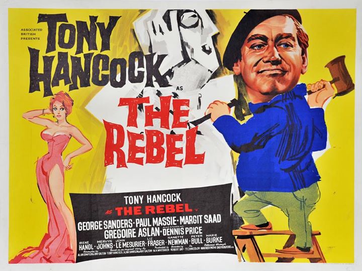 The Rebel is a 1961 comedy film starring Tony Hancock (Hancock’s Half Hour). Hancock plays a downtrodden London office clerk who gives up his job to pursue his dream of being an artist. With an enthusiasm far exceeding any artistic talent, he sets to work on his masterpiece Aphrodite at the Waterhole, moving to Paris where he expects his genius will be appreciated.