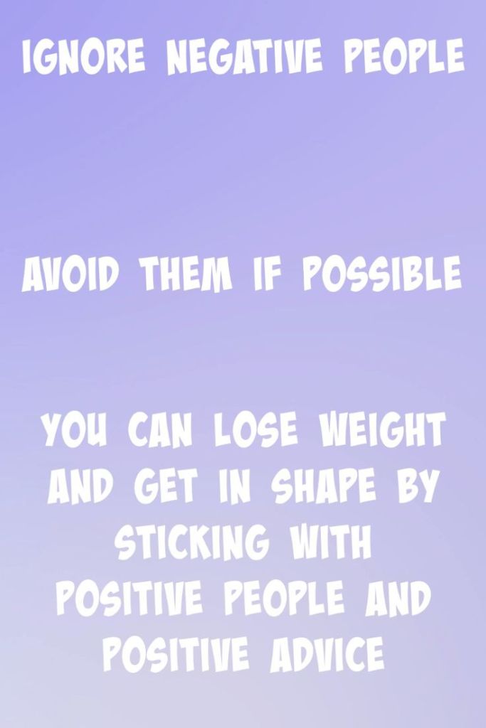 This applies to anything in life, but sometimes we have to work with negative people or share a house with them etc. I guess we just need to keep our mind straight and block out their moaning whinging and unproductive attitude. They should really follow your example and might even do just that when they see you getting results. This whole weightloss thing is true and the slimming calendar works. The key to it is finding what works for you, sticking with it and definately ignoring negative people. It is definately better feeling healthy in mho.
