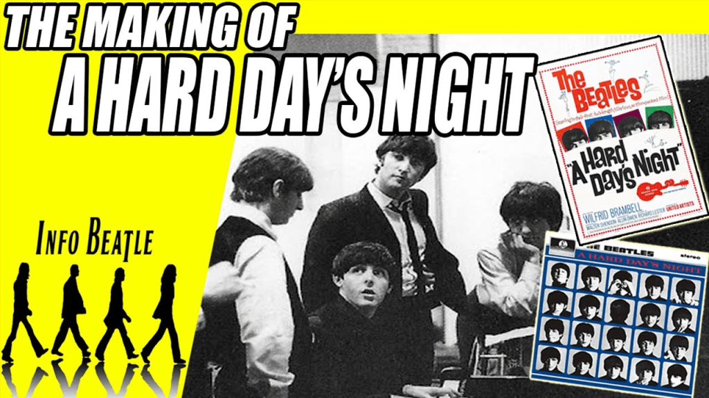 A Hard Day’s Night is a 1964 musical comedy film starring the English rock band the Beatles – John Lennon, Paul McCartney, George Harrison and Ringo Starr – during the height of Beatlemania. Directed by Richard Lester, it was written by Alun Owen and originally released by United Artists.[3] The film portrays 36 hours in the lives of the group as they prepare for a television performance.