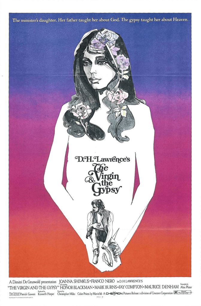 The Virgin and the Gypsy is a 1970 British drama film directed by Christopher Miles and starring Joanna Shimkus and Franco Nero. The screenplay by Alan Plater was based on the novella of the same name by D. H. Lawrence. The film was voted “Best Film of the Year” by both the UK and USA critics.