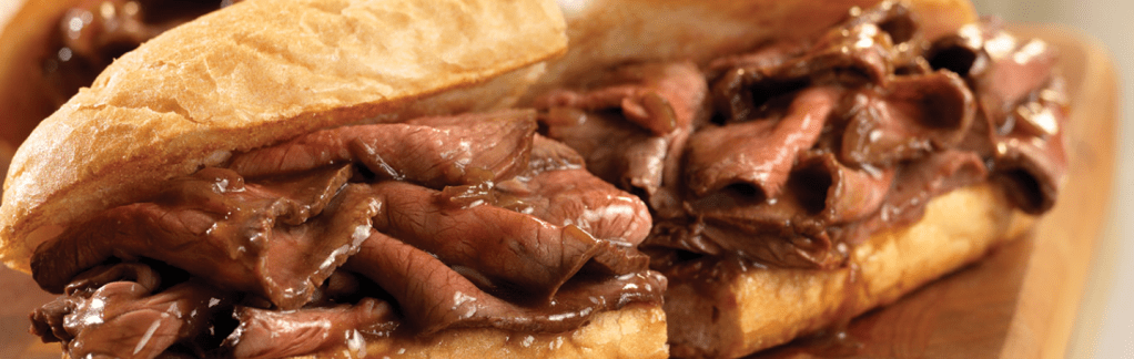 Hot Roast Beef Sandwich with Horseradish Sauce and chips