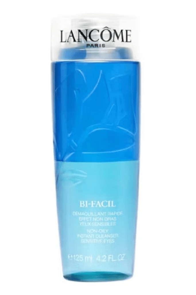 Shake your bottle of Bi-Facil to activate the bi-phase formula. Dampen a cotton pad until the pad turns blue, rest them on your eyes for a few seconds, then gently sweep down to fully remove your eye make-up.